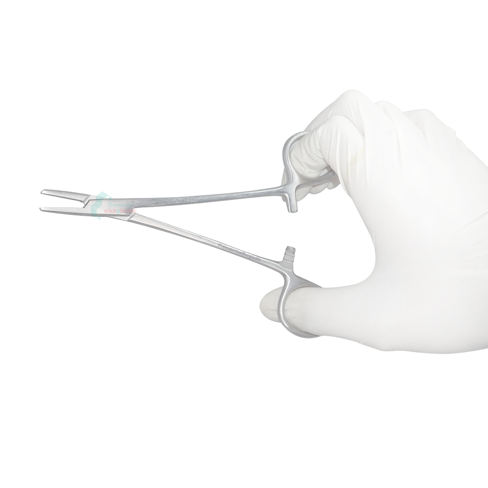 - A well-defined longitudinal groove to prevent to grasp and guide the needle when suturing.
