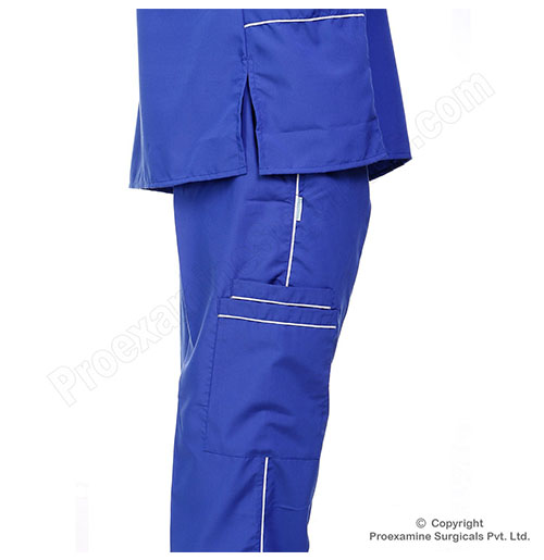 Unisex Scrub Suit Set with piping V-Neck 3 Pocket Top and Cargo Type Trouser (Royal Blue)