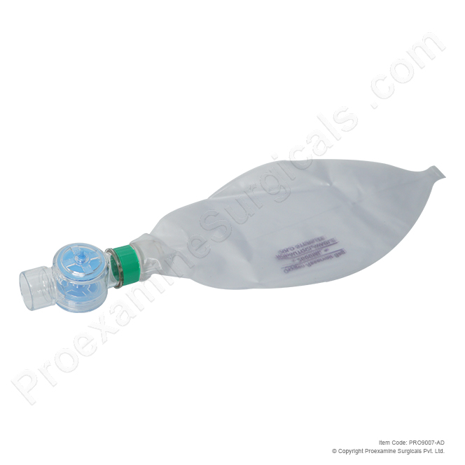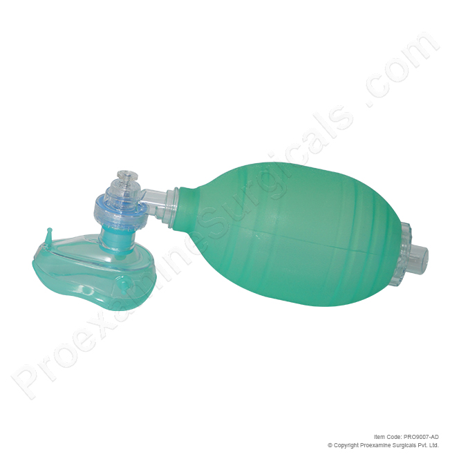 Proexamine Surgicals high performance low cost Artificial Resuscitator crafted from 100% latex free durable silicone polyvinyl chloride and poly carbonate martial that is autoclavable up to 134°C. Resuscitator Bag Capacity 1600ml, Supplied with oxygen reservoir translucent face mask size: 5 and oxygen tubing